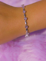 - Design: Light pink bezel heart tennis bracelet with brushed gold links
